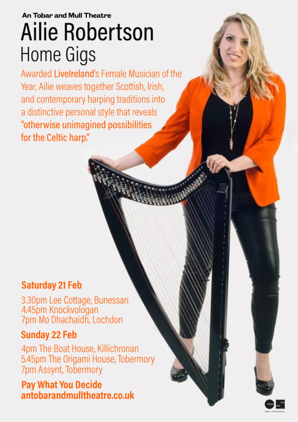 Presented by An Tobar, you can experience the spellbinding music of Ailie Robertson, one of Scotland’s leading clarsach players, in the intimate setting of six different Mull homes. Locations include Tobermory, Killiechronan, Lochdon, Bunessan and Fionnphort.