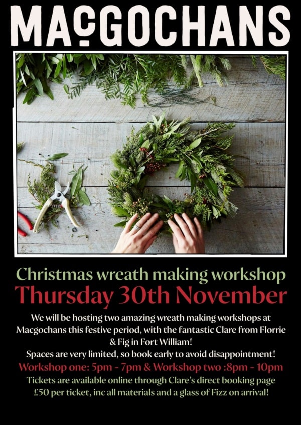 Macgochans in Tobermory will be hosting two amazing wreath making workshops this festive period, with the fantastic Clare from Florrie & Fig in Fort William!