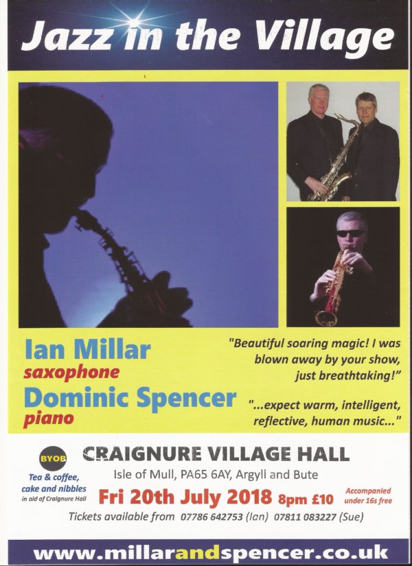 With Ian Millar saxophone and Dominic Spencer piano. Come along for melodic improvisations on original compositions inspired by Scottish scenery, and jazz standards.