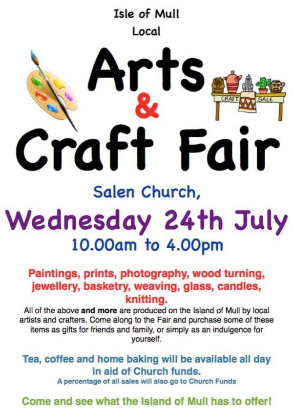 Tea, coffee and home baking will be available all day in aid of Salen Church funds.