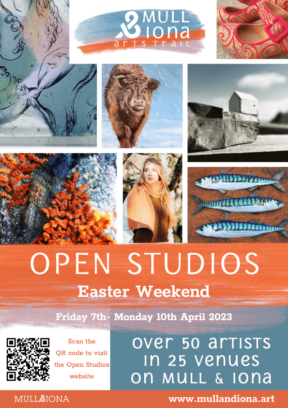 There are 24 venues taking part, throughout all the areas of the islands. Mull is a surprising big island and journey times on single track roads are longer, so make sure you can reach your preferred venues in good time, and check the opening days and times of each one. It takes around 1.5 hours to travel from Tobermory in the North, to Fionnphort in the South. The Ferry to Iona departs from Fionnphort and takes around 10 minutes.