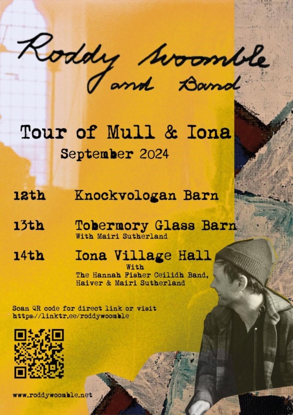 This special tour celebrates the upcoming release of the Roddy Woomble Band’s new album, set to debut in October 2024. Tickets are available exclusively through an online booking system at https://linktr.ee/roddywoomble